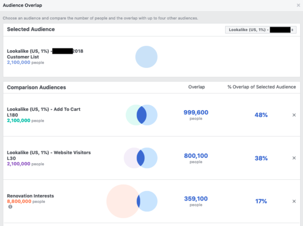 That’s why it’s important to avoid audience overlap. Facebook’s Audience Overlap tool shows where your audiences are clashing: