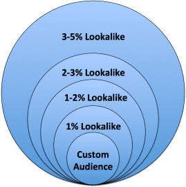 A nested Lookalike Audience strategy allows you to find your audience size sweet spot. In this strategy, you create several Lookalike Audiences, one for each group of similarity percentages: