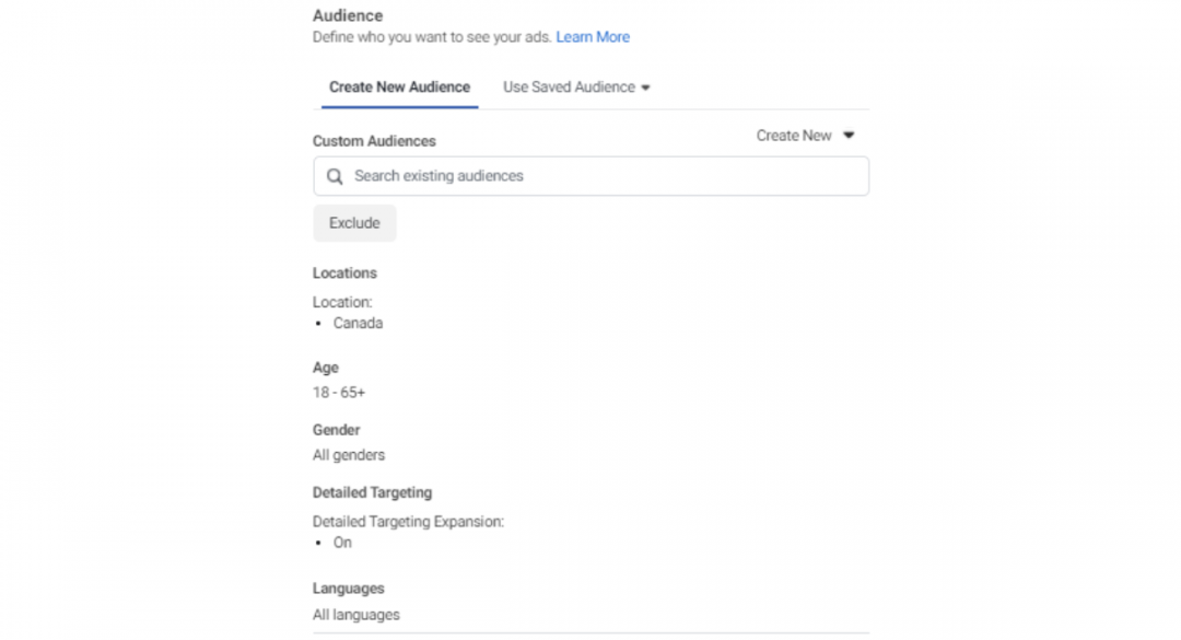 You can select some of these characteristics with traditional targeting. All Facebook campaigns allow you to target people based on their: