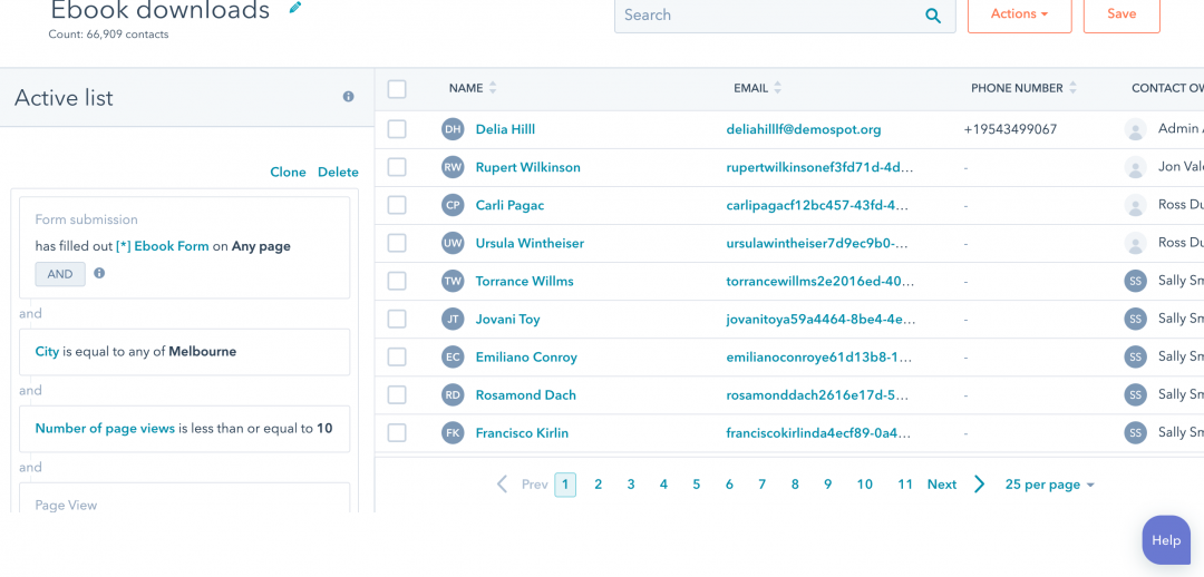 CRM systems like Hubspot allow you to create contact lists that update automatically as you gather more information about the contact. Here’s how it works: