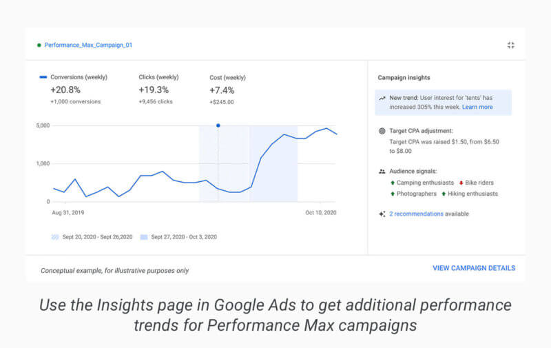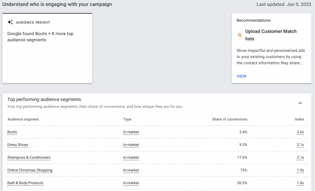 Performance Max’s real-time capabilities are a big benefit too. It shows shopper intent and preferences, meaning you’ll come across new audience segments you previously didn’t know about. Knowing this means you’ll be able to increase the reach of your ads to those that are interested.