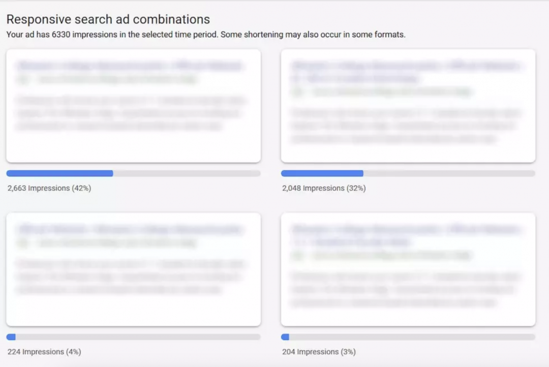 The Combinations report shows you the impression share of each ad combination. This information can be useful, as it shows you which combinations are performing well, and which aren’t quite as effective: