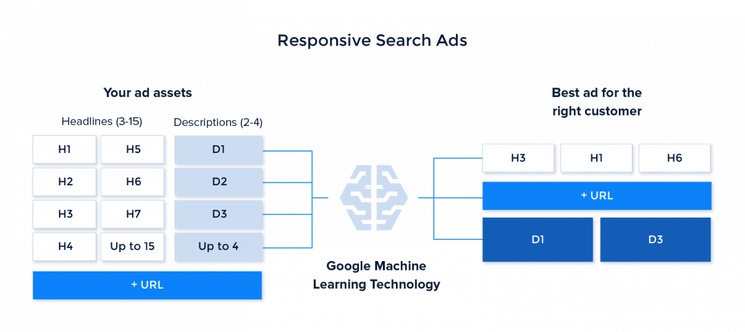 Responsive search ads combine machine learning algorithms with your ad creative to put the right ad in front of the right customer. They’re designed to automate parts of the advertising process, while still giving advertisers a good return on their investment.
