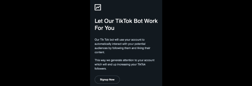 There are many articles out there promoting now as the best time to purchase TikTok bots while "there isn't any serious type of regulation on interaction automation." Sellers tighten the sense of scarcity by saying that eventually, TikTok will tighten its rules, but for now, it's a free-for-all, and you might as well take advantage.